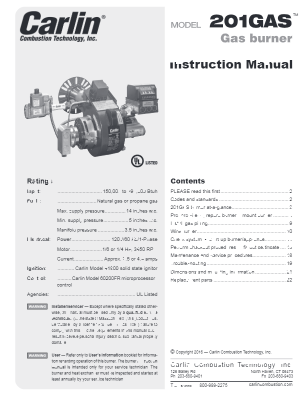 The 201GAS burner converts from propane to natural gas with just an orifice change. No conversion kit needed. Factory packed with combustion control and gas fuel train.