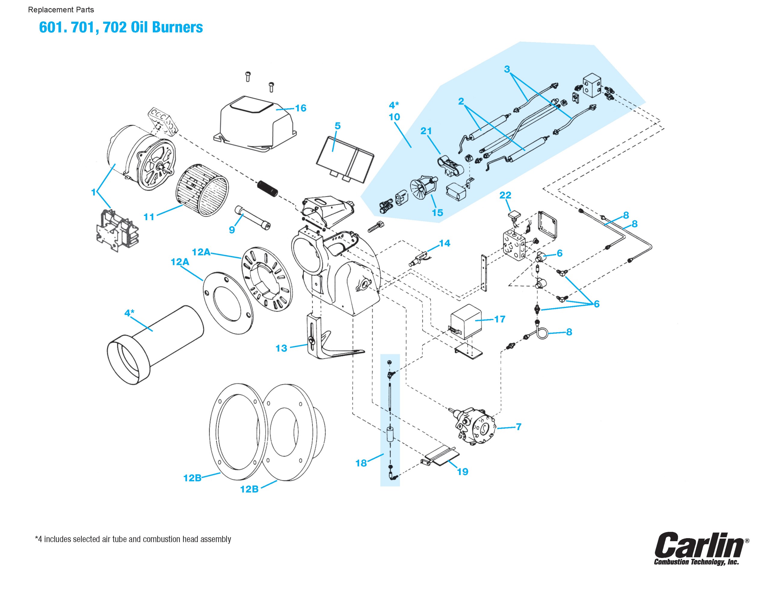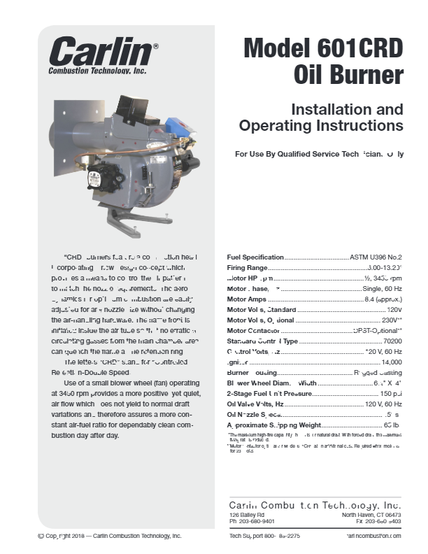 The 601CRD advanced oil burner features Carlin’s adjustable combustion head assembly – for unmatched fuel/air mixing, smooth light-offs and quiet running. Proven for years in the field and in extensive boiler and furnace testing, these