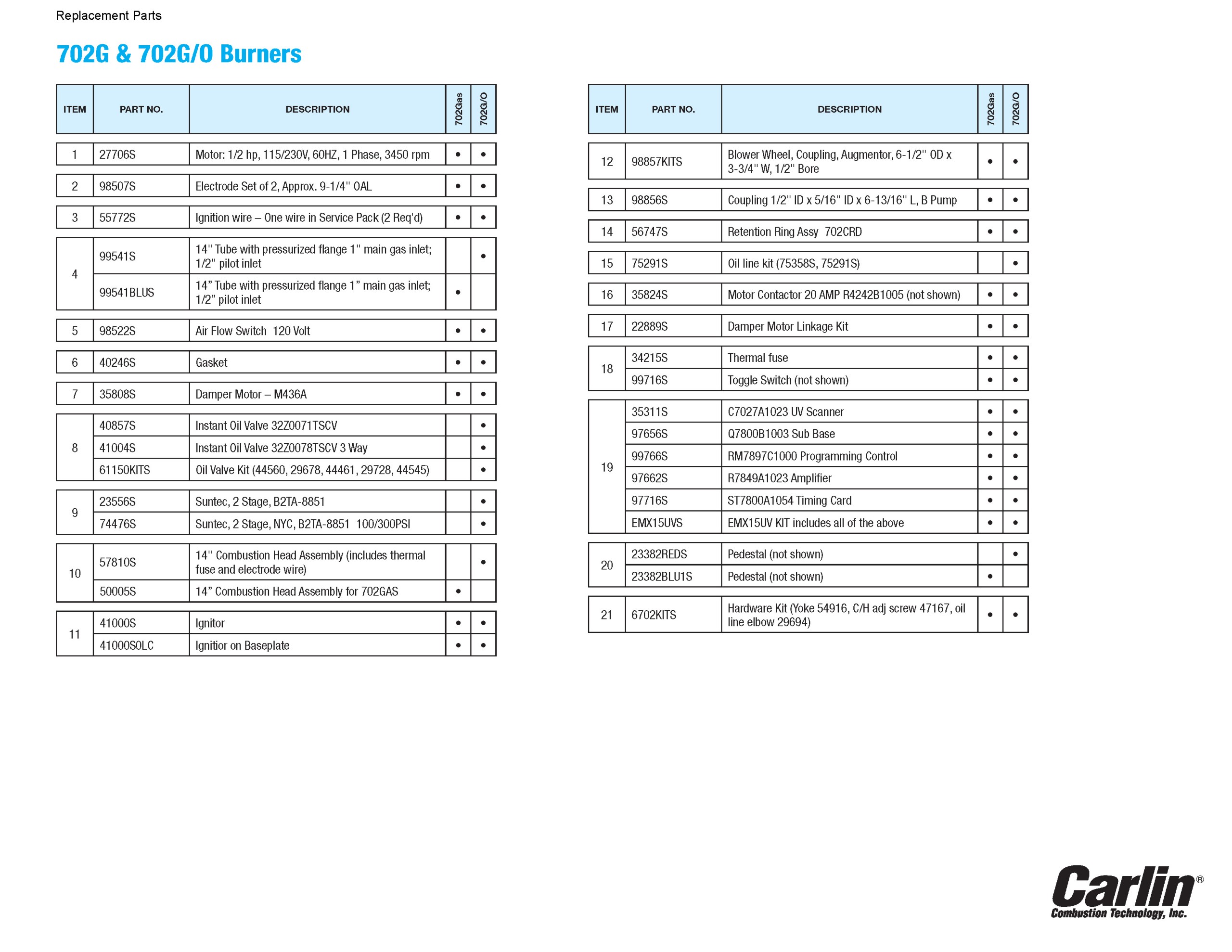 Oil: Carlin Model 45000 solid state ignitor Ignition Voltage: 14000 volts