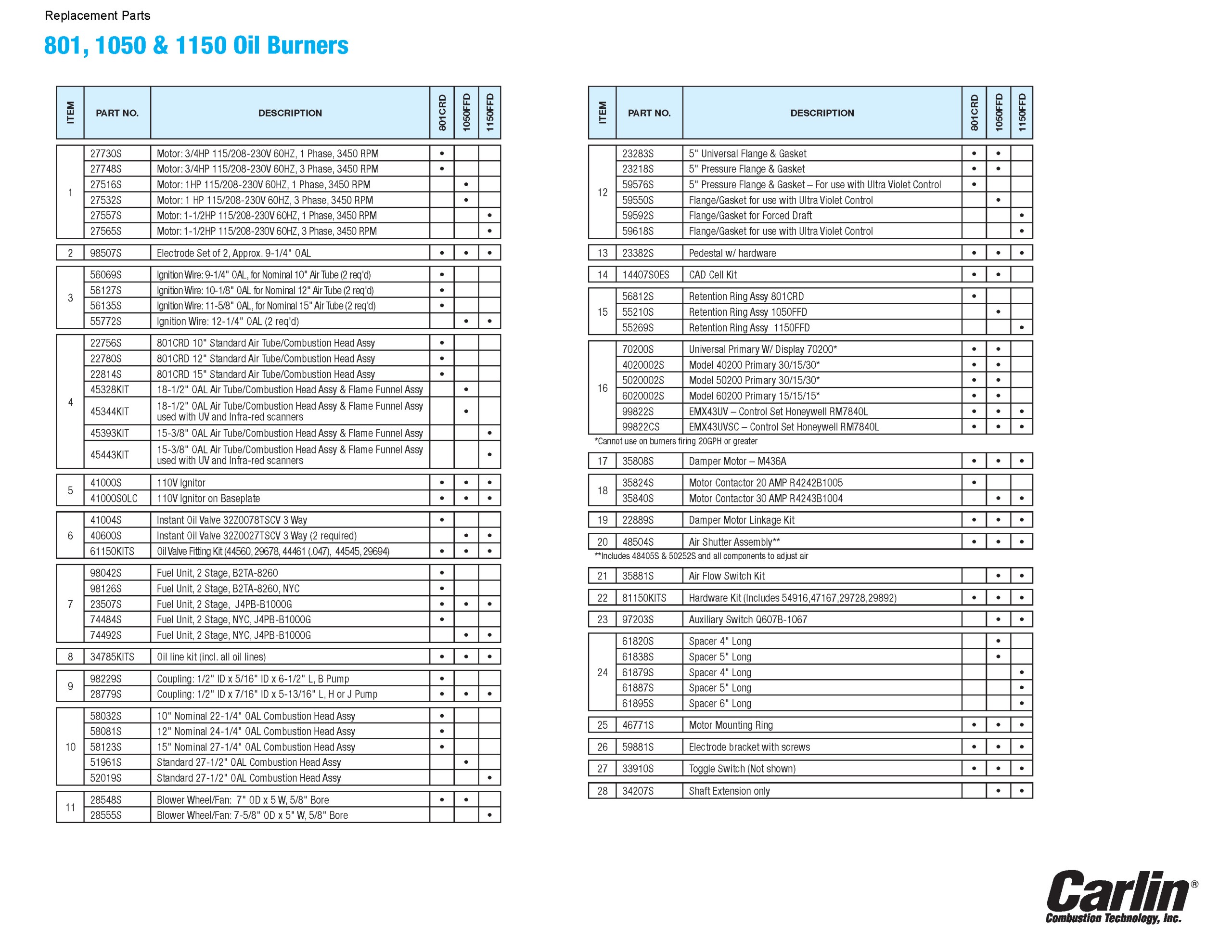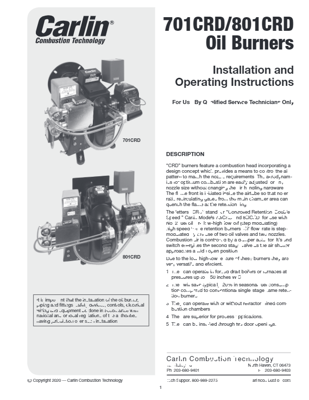 The 701CRD and 801CRD advanced oil burners feature Carlin’s adjustable combustion head assembly – for unmatched fuel/air mixing, smooth light-offs and quiet running.