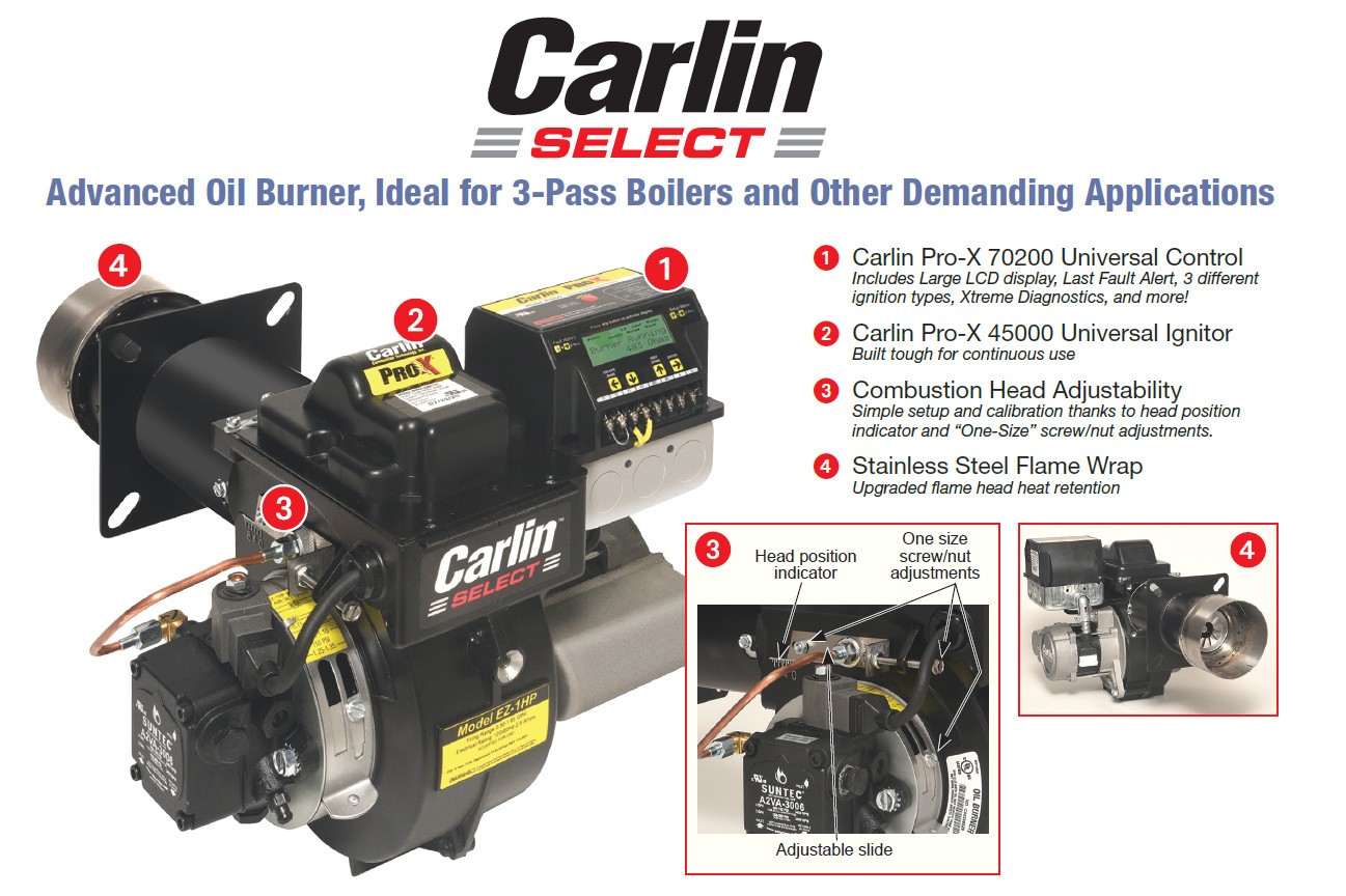 Designed with technicians in mind, the Carlin EZ Select provides added flexibility for 3-Pass Boilers and other demanding applications, with features including: